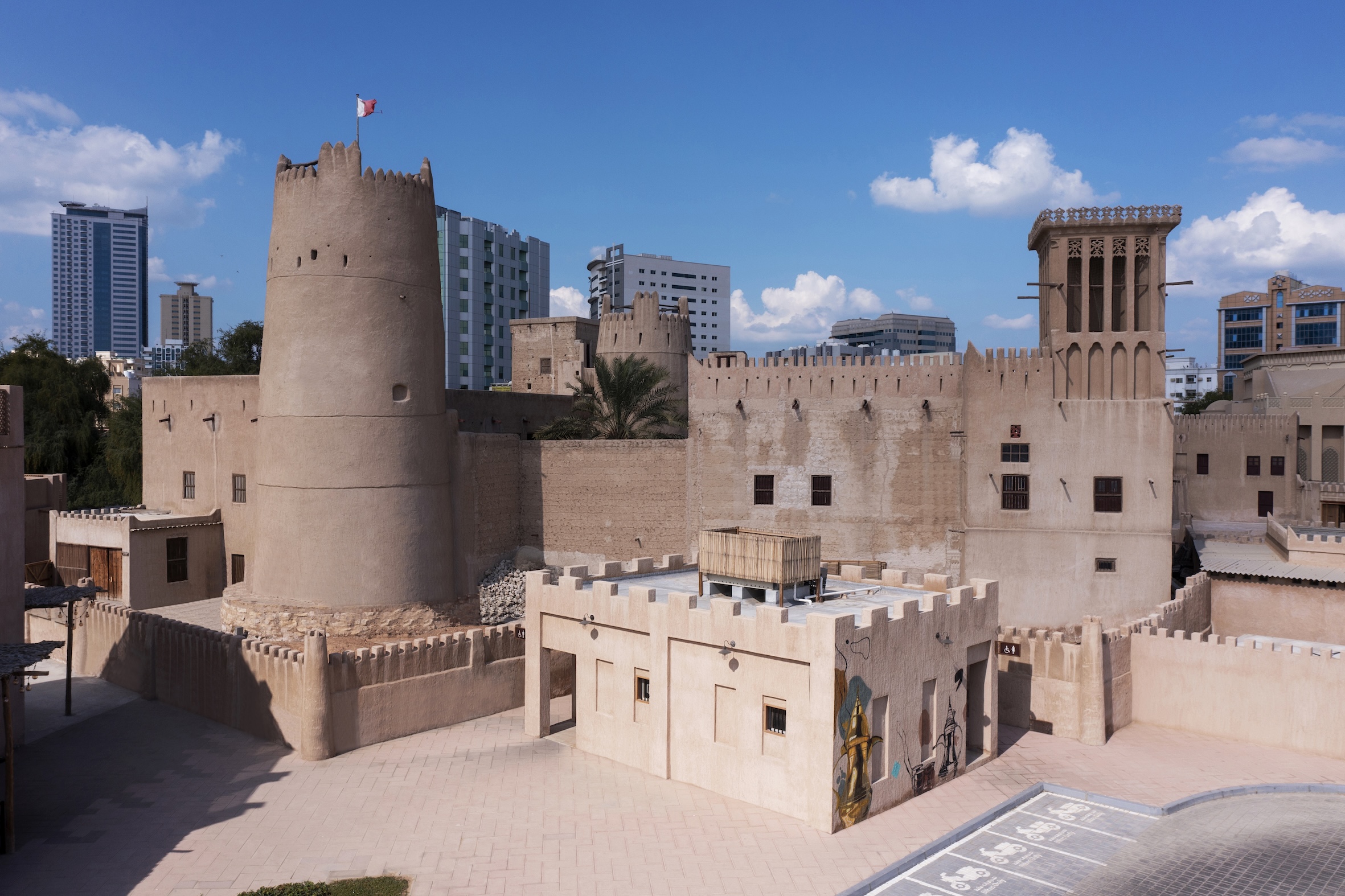 Im Herzen des alten Stadtzentrums steht ein Gebäude, das die Geschichte des Emirats wie kaum ein anderes erzählt: die ehemalige Herrscherfestung, heute das Ajman Museum. Die massive Architektur, die jahrhundertelang Schutz bot, beherbergt heute Ausstellungen über die frühe Siedlungsgeschichte, das Perlentauchen, das alltägliche Leben vergangener Generationen und die maritime Kultur am Golf. Wer durch die Innenhöfe und Räume geht, spürt den Übergang von einem traditionellen Wüstenemirat zur modernen Gesellschaft – nicht als nostalgische Inszenierung, sondern als nachvollziehbare Entwicklungslinie.